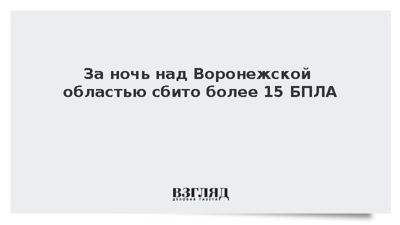 Более 15 беспилотников уничтожено над Воронежской областью в течение ночи, сообщил губернатор Александр Гусев.