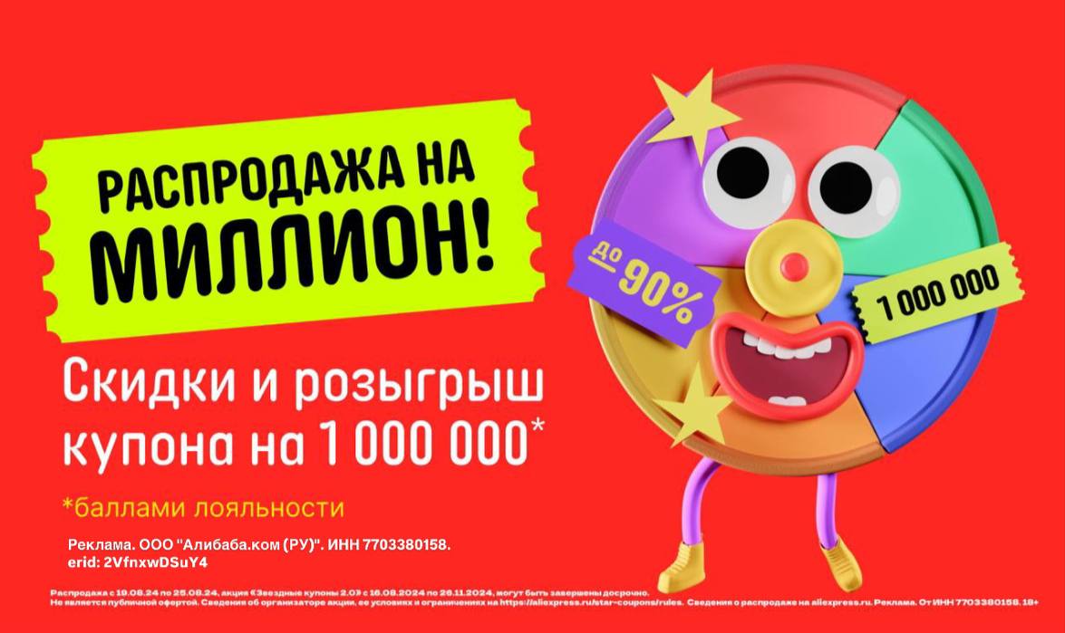И ещё: есть шанс выиграть 1 000 000 баллов на будущие покупки. При покупке товаров со скидками до 90% в приложении AliExpress вы найдёте простые задания — за их выполнение начислят звёзды, которые можно обменять на купоны. Чем больше купонов, тем больше шансов получить один из главных призов.
