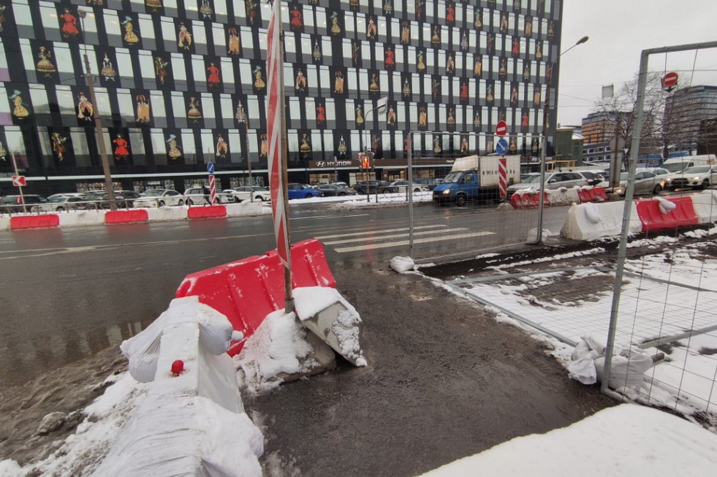 По телефону, который указан на сайте «МегаМейда» о Пискаревском проспекте, «Фонтанке» подтвердили: работы остановлены. Но убрать ограждения и освободить две полосы движения не представляется возможным — там производится складирование материалов.