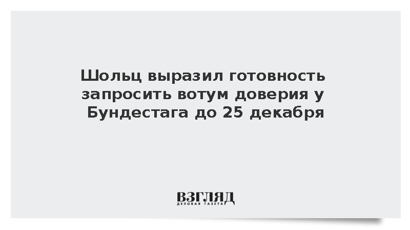 Канцлер Германии Олаф Шольц заявил о возможности вынесения вопроса о вотуме доверия своему правительству на обсуждение Бундестага до 25 декабря, несмотря на ранее озвученные планы сделать это в январе.