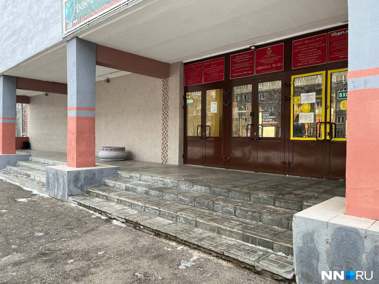 Одна из самых престижных школ Нижнего в центральном районе оказалась «дырявой». Нажал на кнопку на калитке — пустили без особых вопросов. Зашёл прямо перед одной из родительниц, придержал ей дверь внутрь — сначала женщина отказывалась входить в предбанник, мол, не положено и её оттуда прогонят, охранник суровый.
