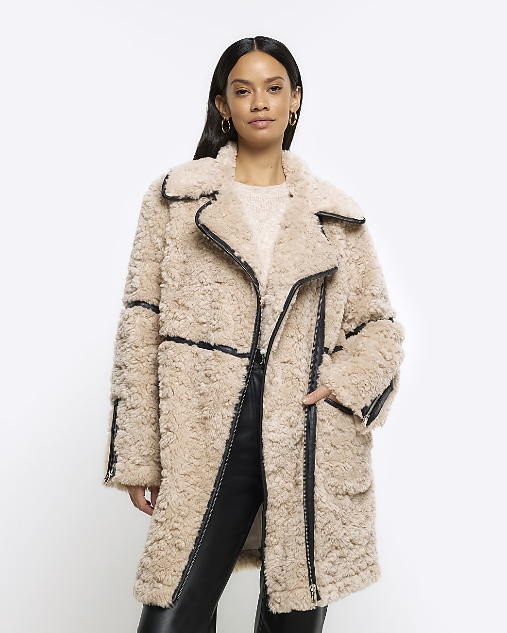 River Island Cream Borg Biker Coat, Was £95 Now £55