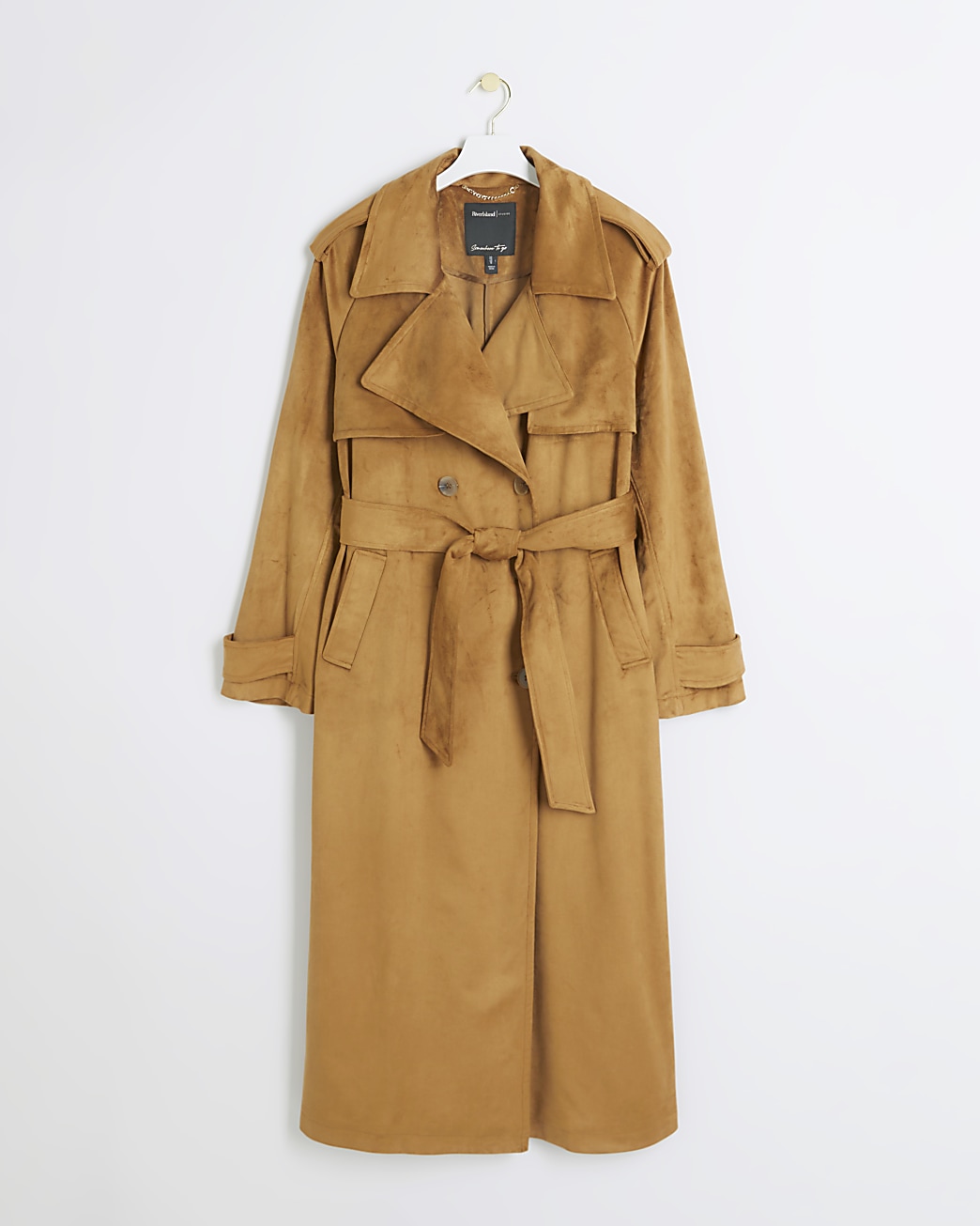River Island Brown Suedette Belted Trench Coat, £42, Was £99