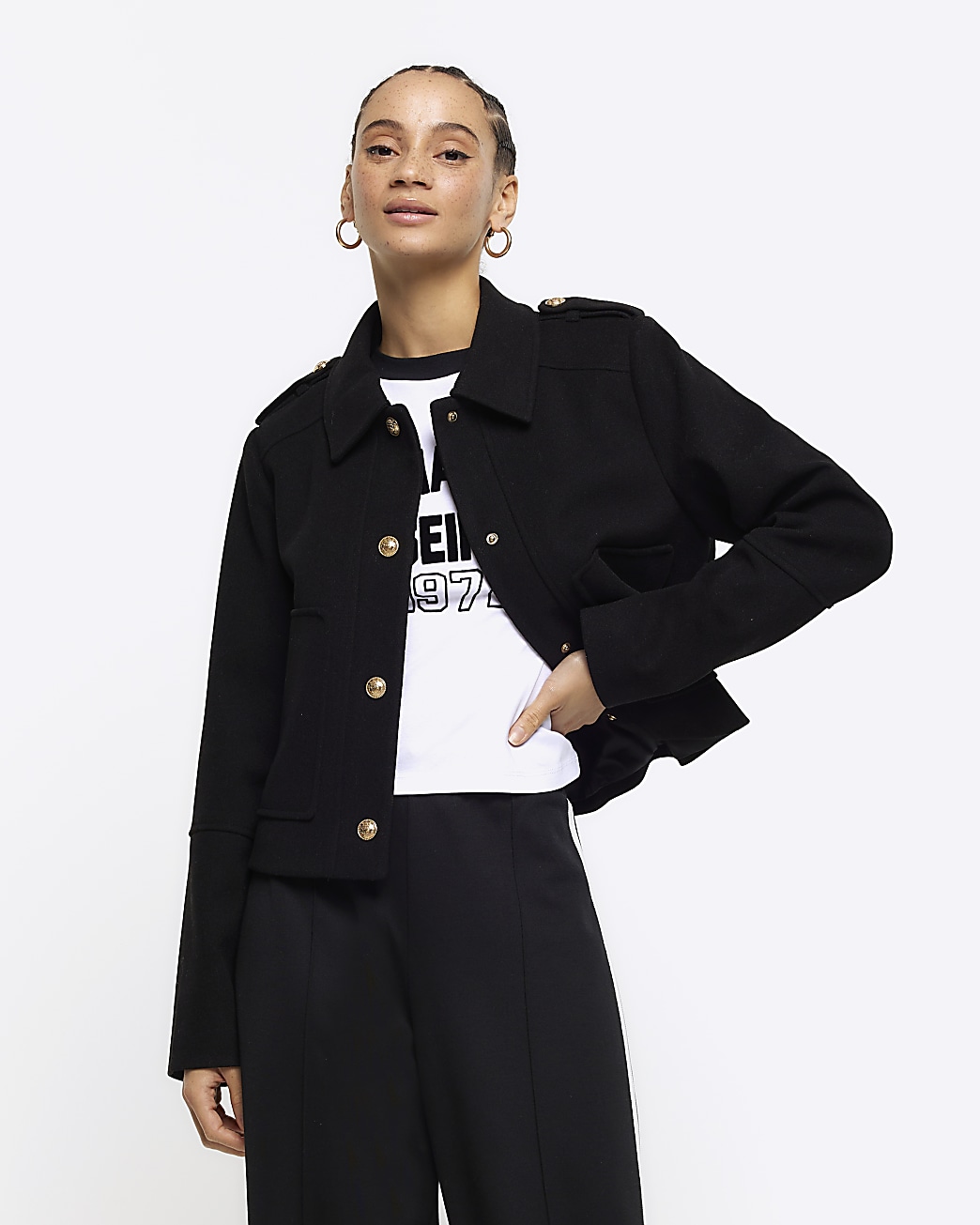 River Island Black Popper Crop Jacket, Was £45 Now £17
