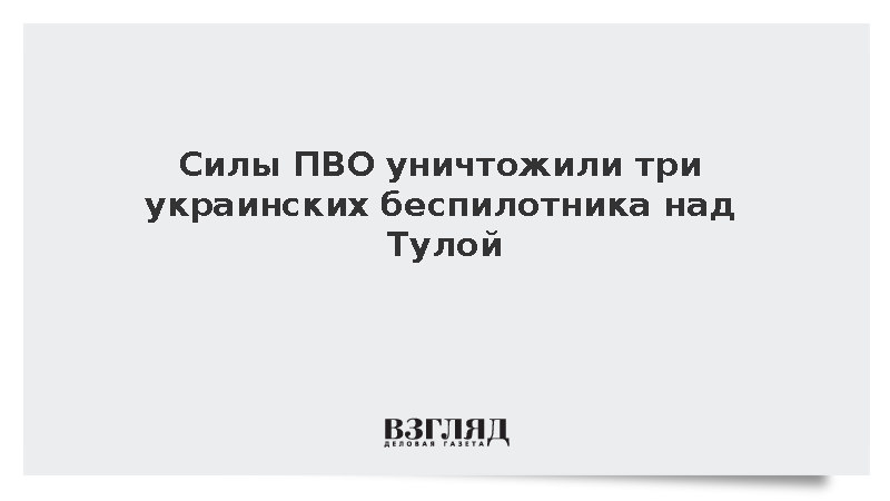 Силы противовоздушной обороны уничтожили три беспилотника Вооружённых сил Украины над Тульской областью, передает ТАСС. Губернатор региона Дмитрий Миляев сообщил об этом в своем телеграм-канале.