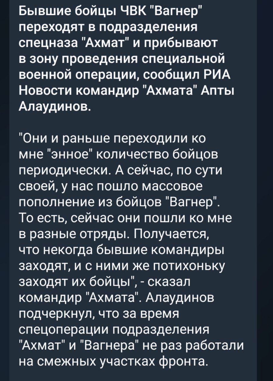Прочитала у Тринадцатого, что переход «Вагнеров» в «Ахмат» - это вранье.