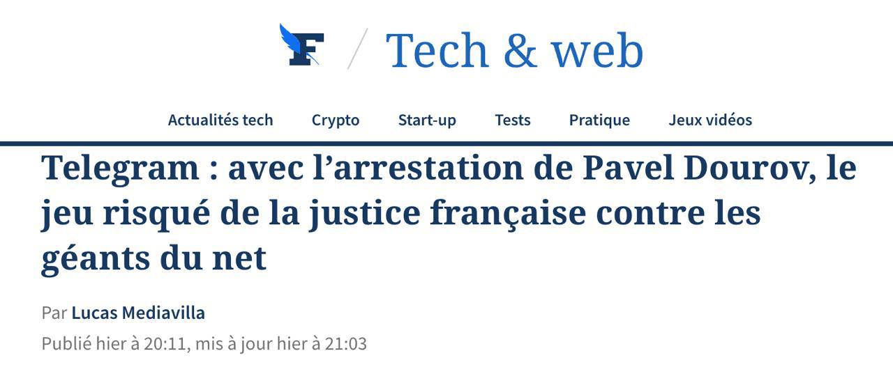 Он также ставит под сомнение, что "Телеграм" не сотрудничал с властями, ведь за минувший год по запросу Парижа удалил ряд "пророссийских каналов, распространяющих ложную информацию". Личча также обращает внимание, что Telegram никогда не подвергался нападкам со стороны парламентской комиссии по расследованию во Франции, а в последнее время все больше претензий у властей было не к "Телеге", а к Х.