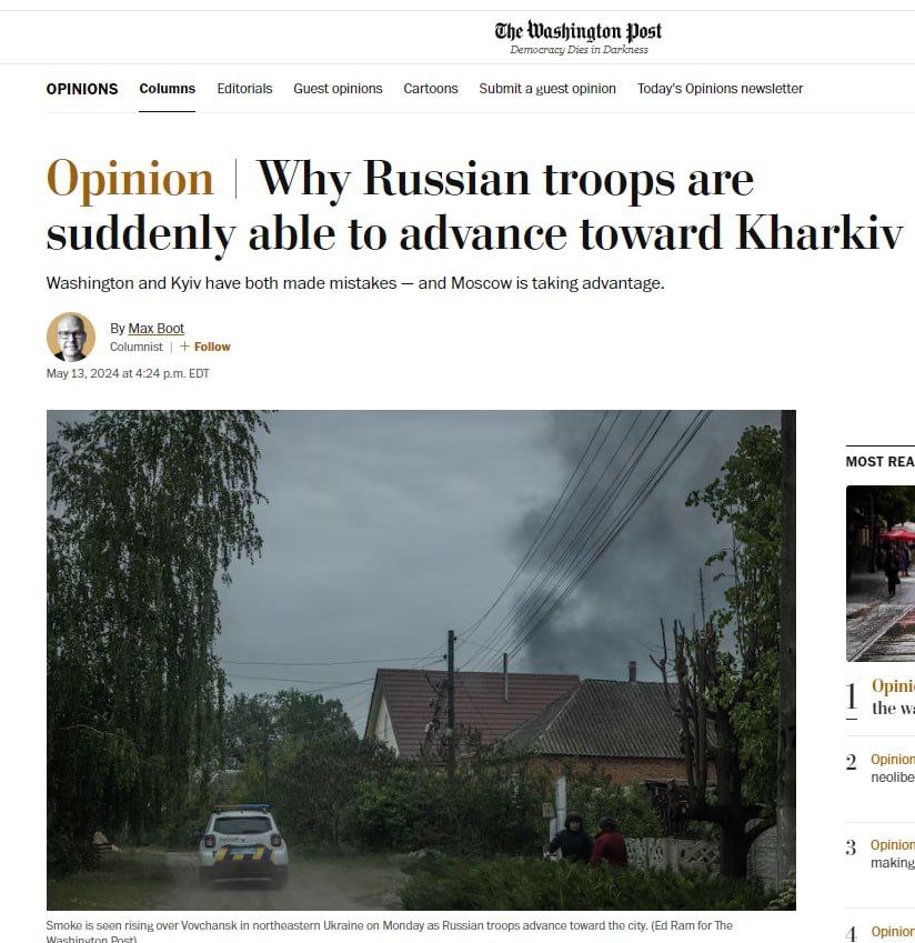 Москва пользуется ошибками Киева и Вашингтона, пишет обозреватель The Washington Post Макс Бут. Автор решил разобраться, почему российские войска «добились такого внезапного успеха» и «оказались способны двигаться на Харьков».