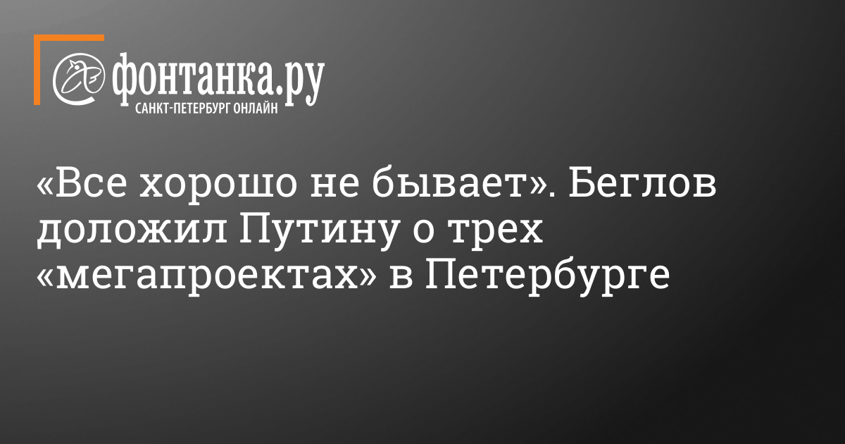Беглов доложил о выполнении трех «мегапроектов» в городе. Первый — это Большой Смоленский мост. «Мы уже проходим экспертизу, в ноябре закончим, и уже в декабре мы приступим к строительству этого моста. Планируем завершить в 2027 году... Если появится время у Вас, с удовольствием пригласим Вас на закладку первого камня», — сообщил губернатор.