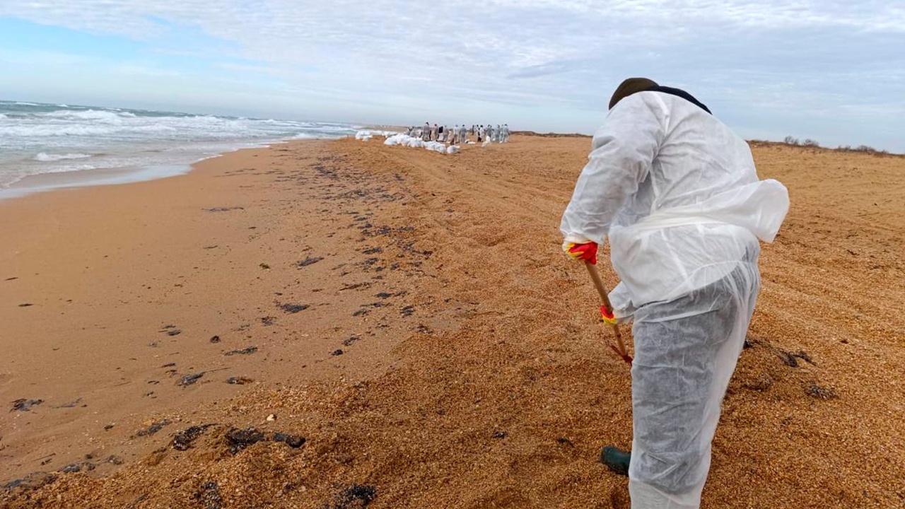 В Краснодарском крае на 14 участках нашли повторные выбросы мазута. Там ведут доочистку. Грунт собирают лопатами в мешки, небольшие вкрапления просеивают через сетки и собирают садовыми граблями.
