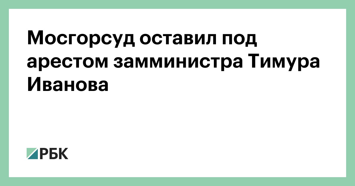 В среду, 8 мая, Московский городской суд оставил без изменения решение Басманного суда Москвы об аресте обвиняемого в получении взятки на сумму 1 млрд 185 млн руб. заместителя министра обороны Тимура Иванова, передает корреспондент РБК.