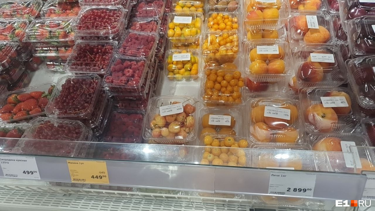 В «Гиперболе» появилась черешня по цене икры. Фото деликатеса прислал читатель E1.RU Сергей. Килограмм ягод стоит почти шесть с половиной тысяч рублей. Черешня расфасована по небольшим контейнерам — 300 граммов обойдутся в две тысячи.