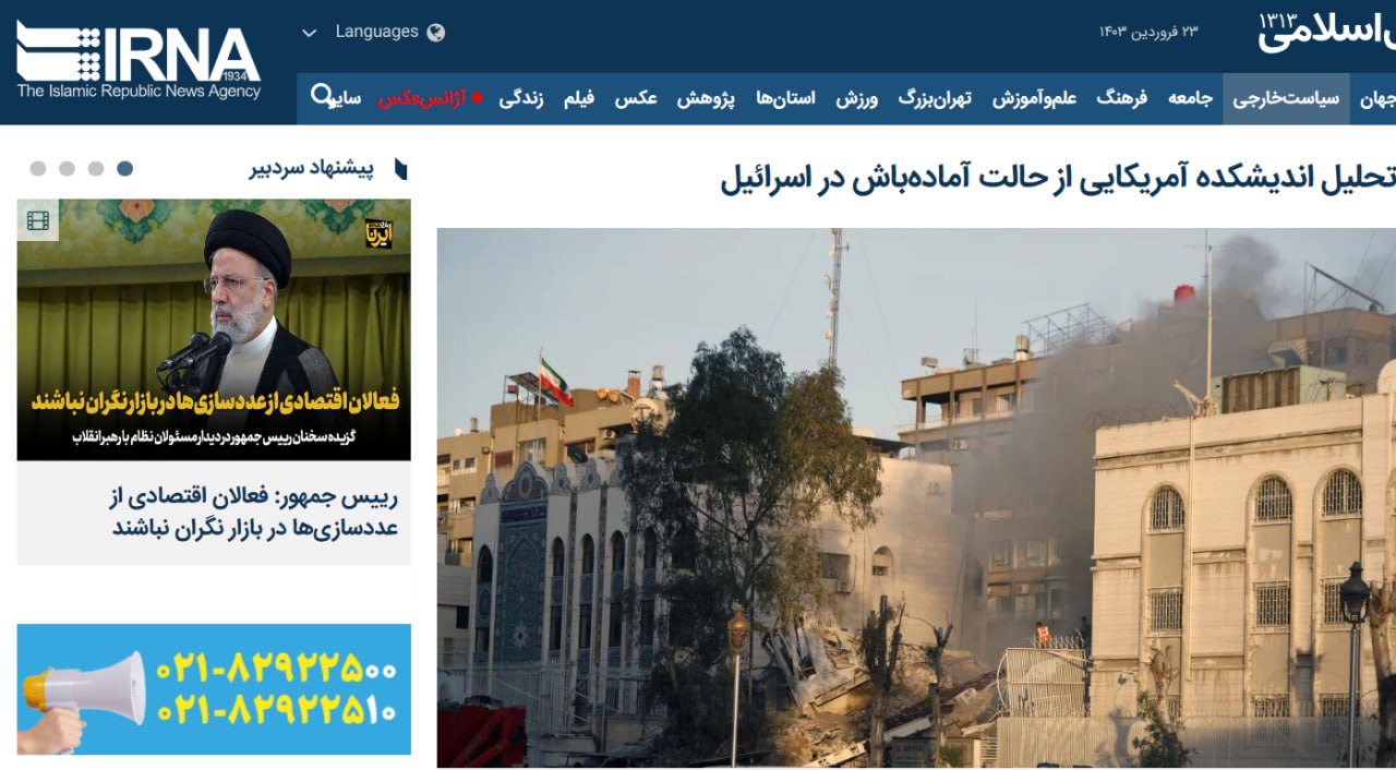 IRNA: аналитический центр США заявил о состоянии повышенной боевой готовности сил Израиля в ожидании возмездия Ирана