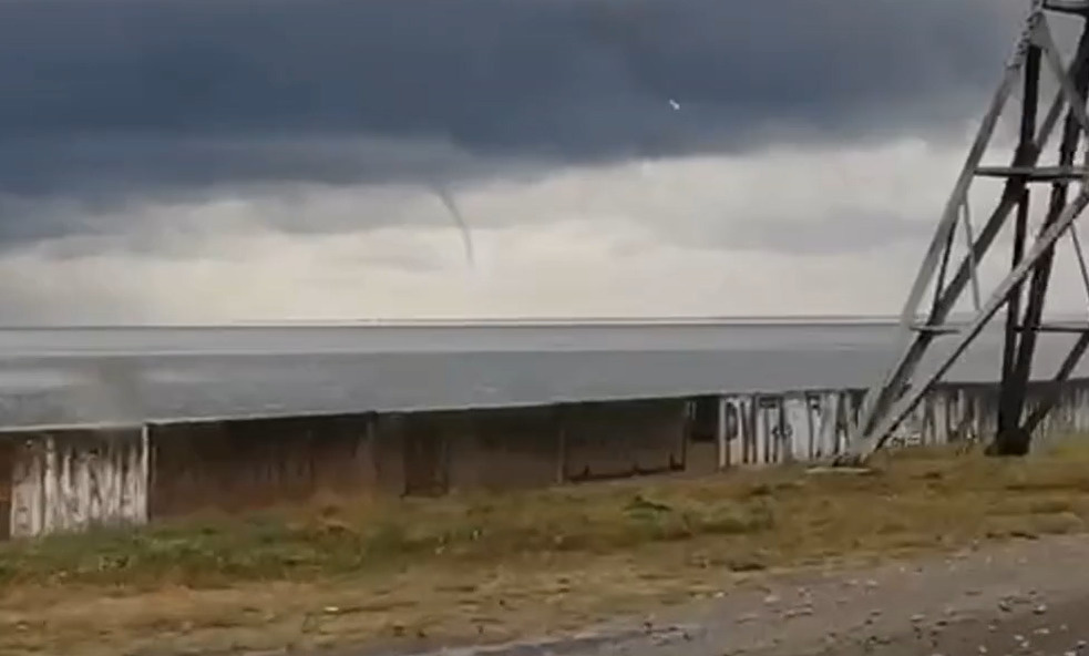 На кадрах можно заметить пасмурное небо, в котором виднеется смерч. Автор снял вихрь на камеру, когда проезжал по дамбе ГЭС.