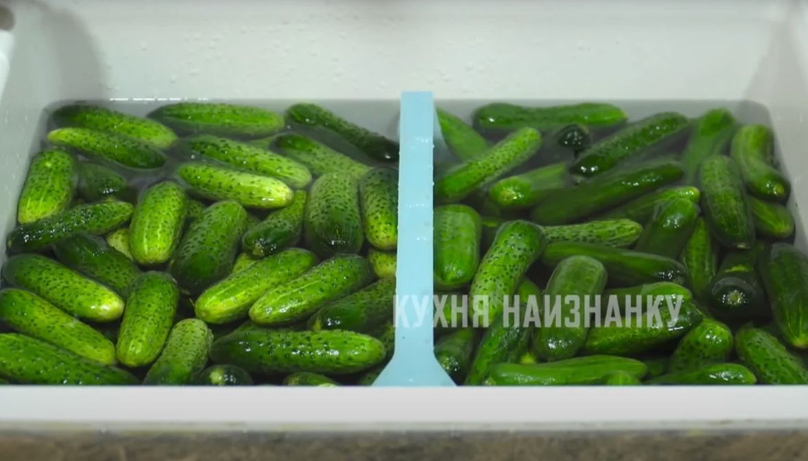 Огурцы я заранее замачиваю в холодной воде на пару часов.