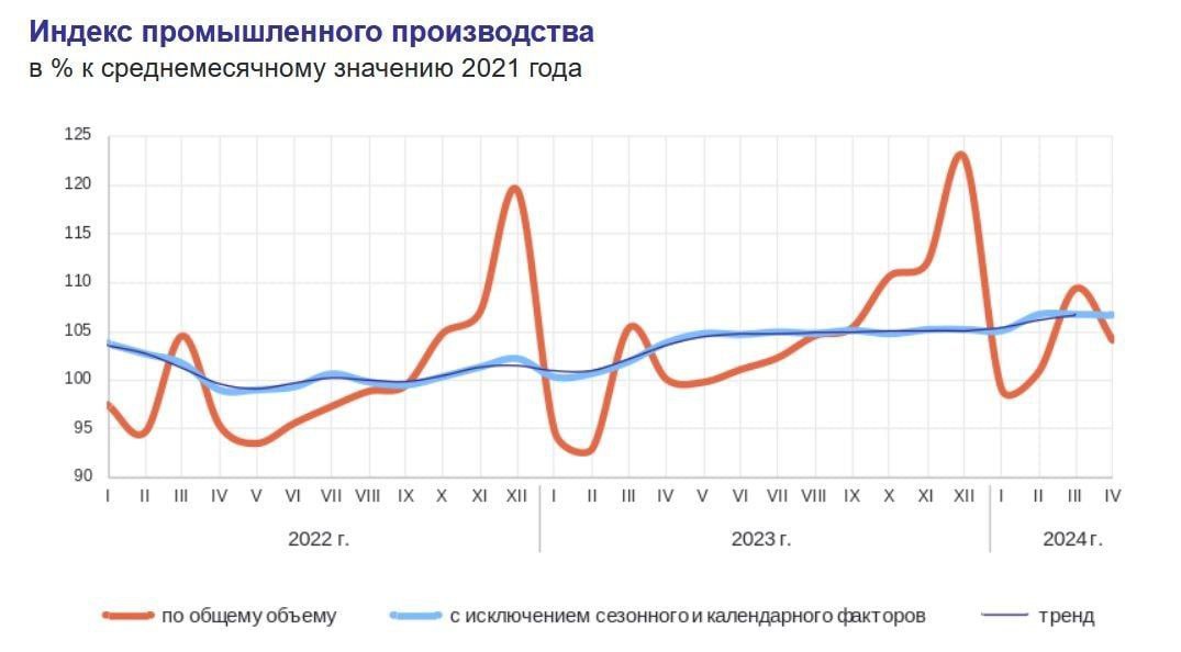 ⚡️Промпроизводство в России в январе-апреле выросло на 5,2% по сравнению с аналогичным периодом прошлого года — Росстат
