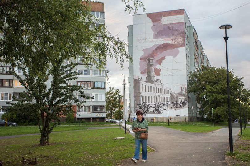 Новый мурал с изображением пожарных XIX века появляется в Пскове, передает корреспондент «МК в Пскове».