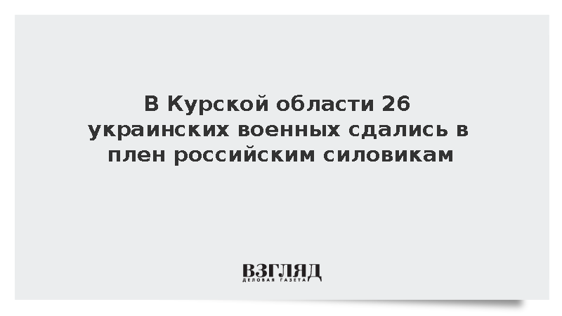 В Курской области во время контратаки в плен сдались 26 украинских военных. Источник в российских силовых структурах уточнил, что только за прошедшие сутки в плен сдались четверо бойцов, сообщает ТАСС.