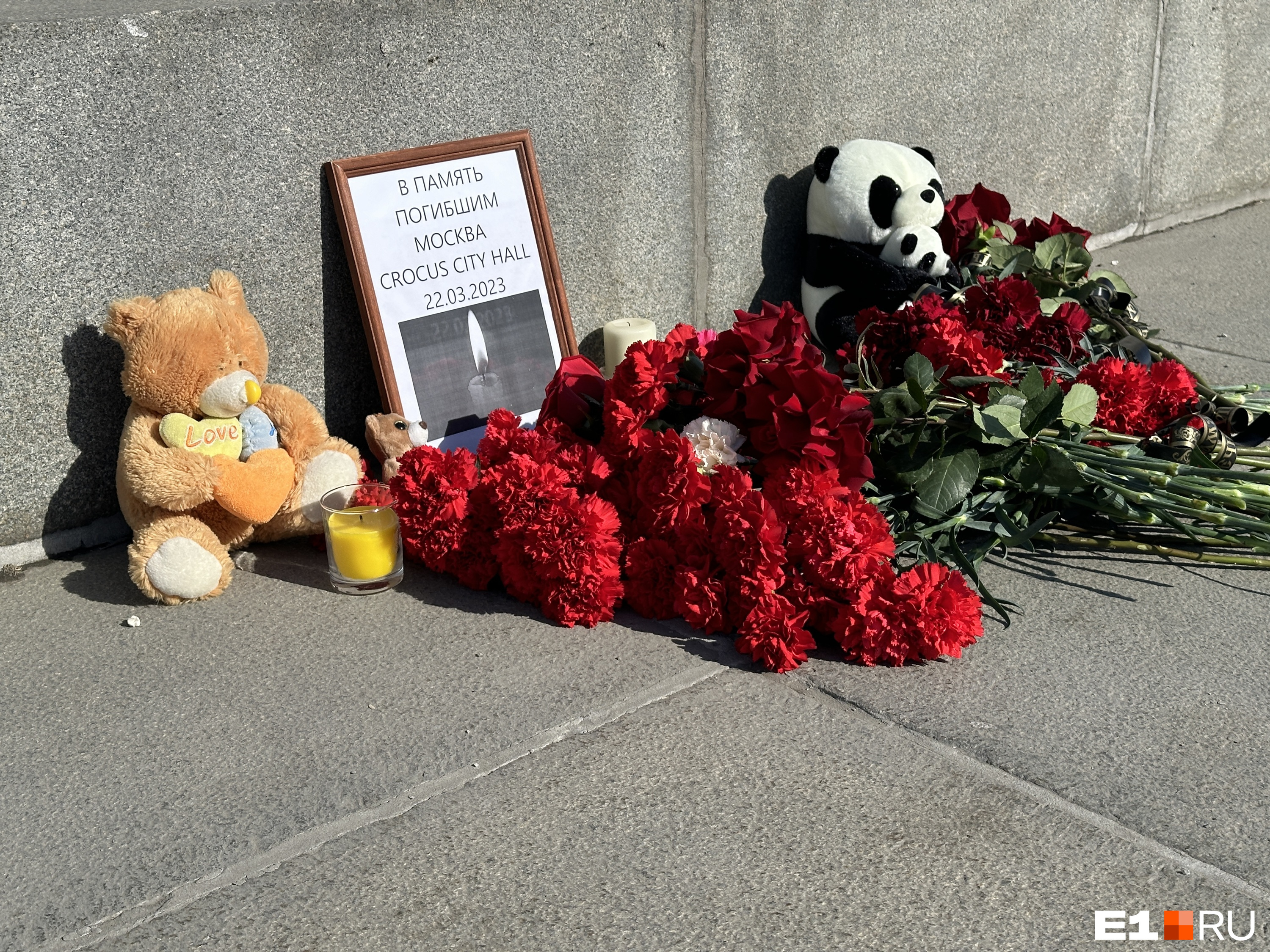 В центре Екатеринбурга, возле памятника Владимиру Ленину, появился стихийный мемориал. Горожане несут гвоздики и игрушки к рамке, внутри которой только одна надпись: «В память погибшим. Москва. Crocus City Hall». Там 22 марта во время теракта жестоко убили почти сотню человек, среди погибших — несколько детей.