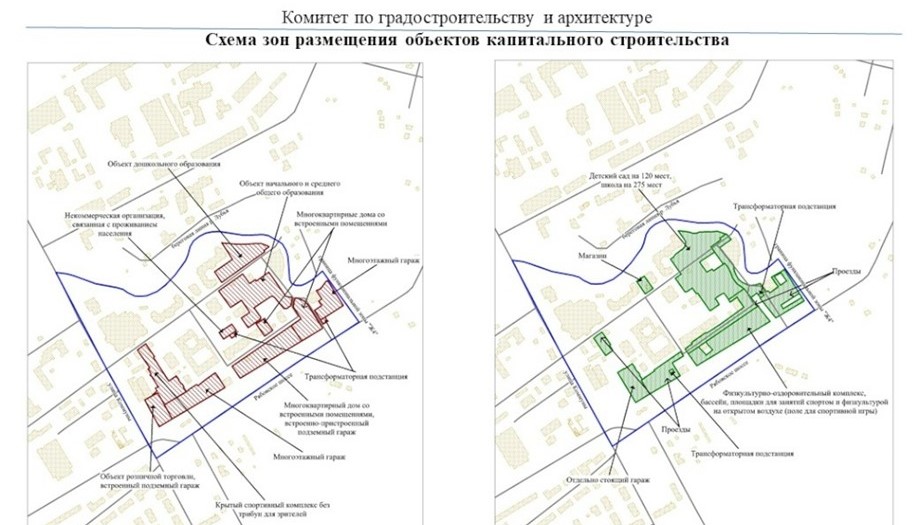 В Красногвардейском районе на указанном участке ранее планировалось строительство жилого дома. Теперь здесь возведут физкультурно-оздоровительный комплекс с бассейном и паркинг на 300 мест. Рядом появится школа на 275 мест и детсад на 120 мест.