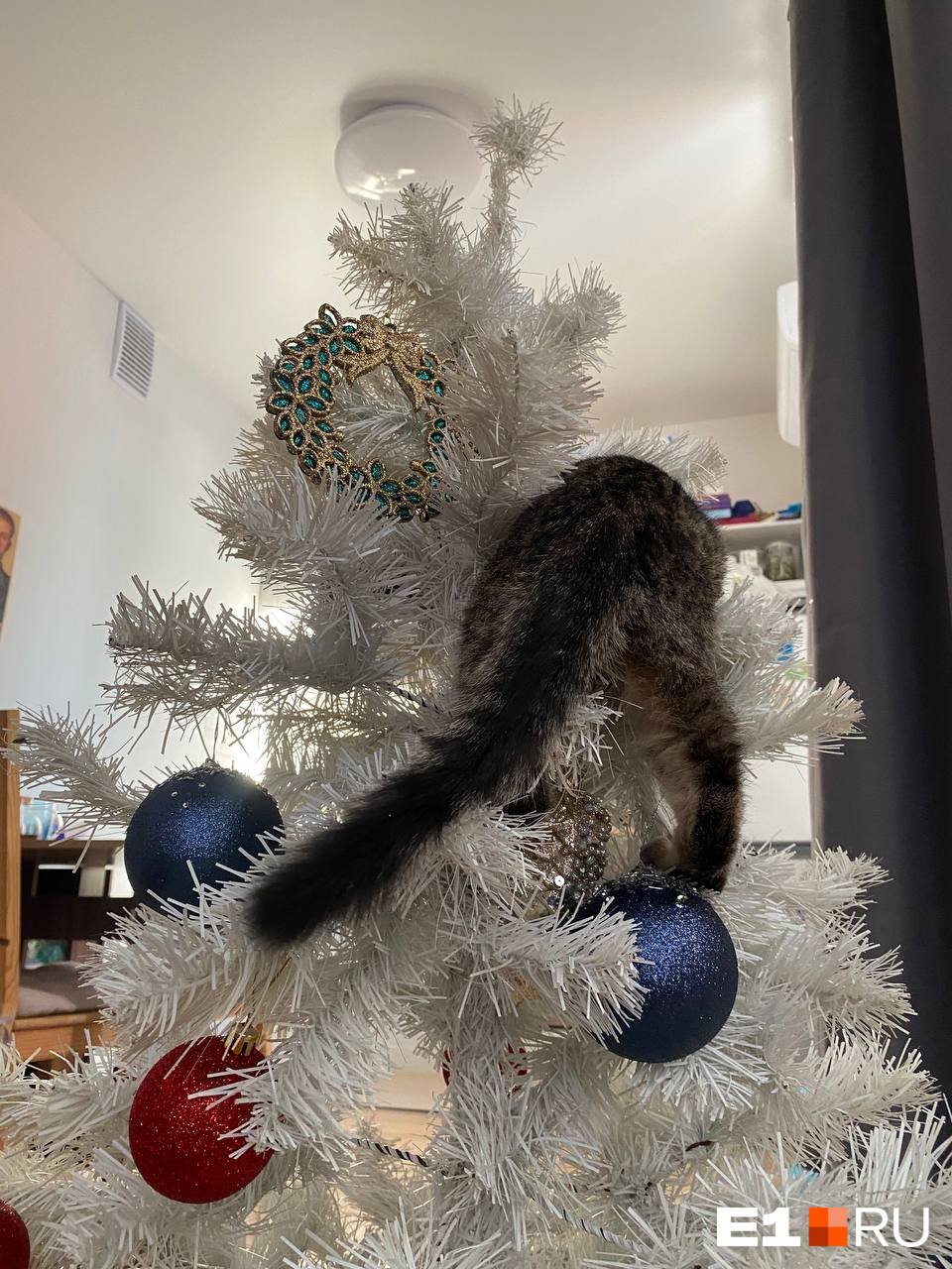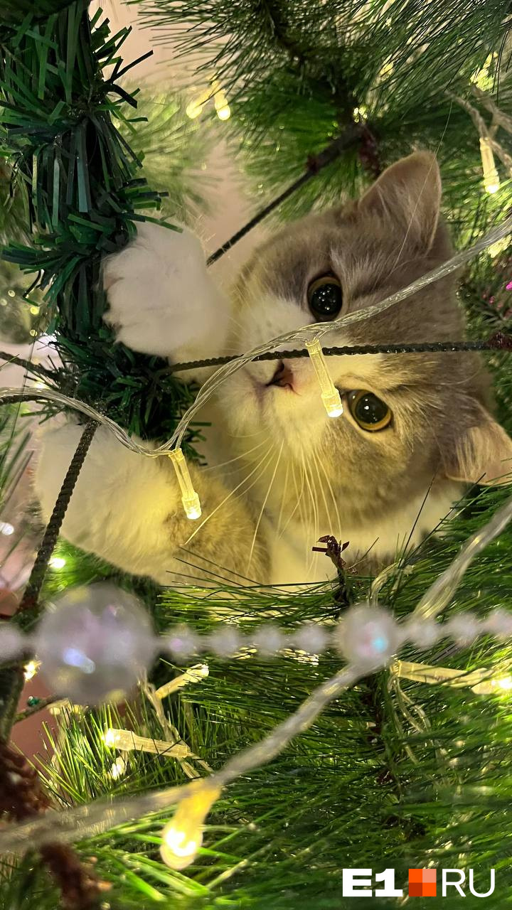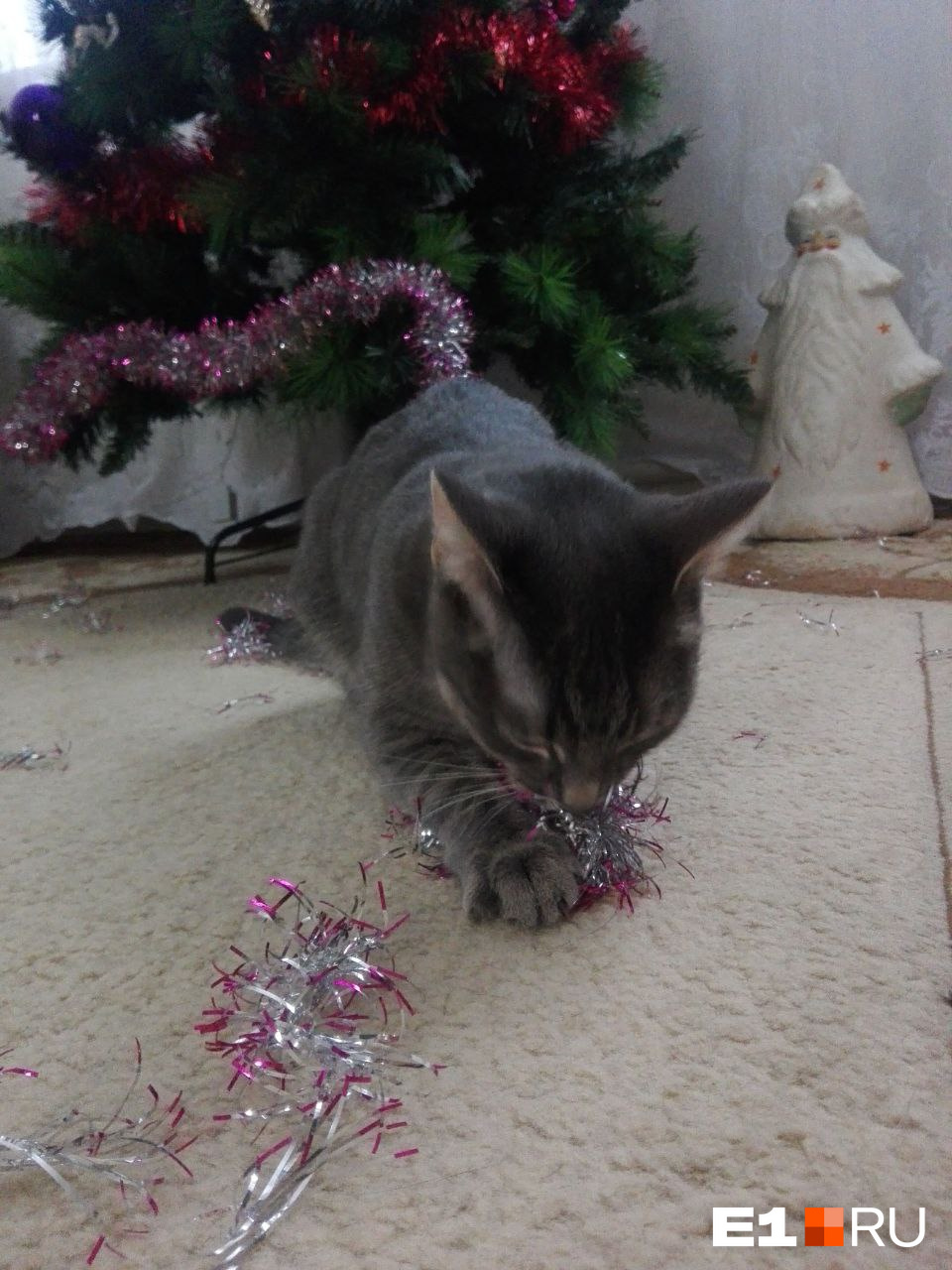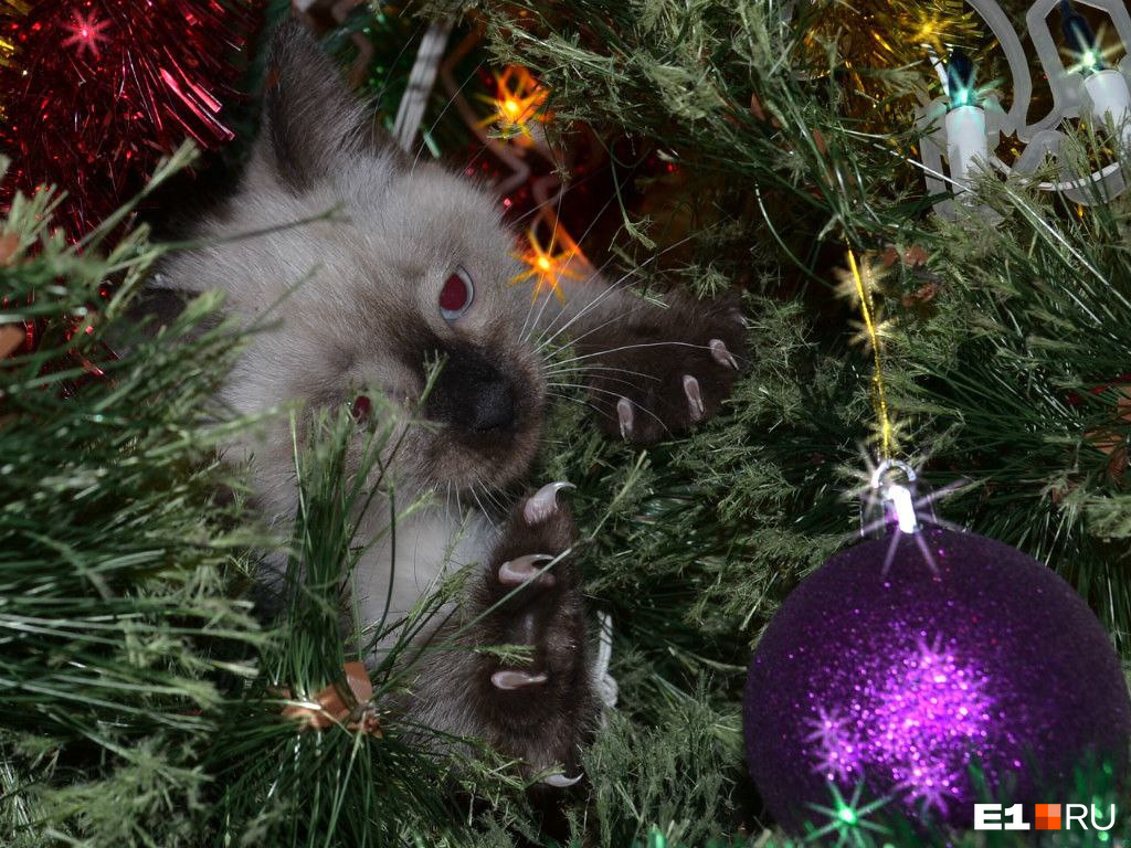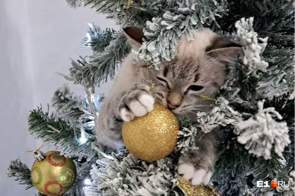 Новый год — время приятных хлопот не только для людей, но и для их домашних питомцев. Порой кажется, что у котов есть негласные законы — хоть раз залезть на елку, сдернуть с нее игрушки или мишуру и полетать на гирлянде, как на лиане.