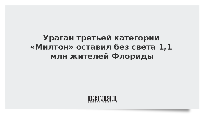 Ураган «Милтон» обрушился на западное побережье Флориды, оставив без электричества более 1,1 млн жителей, скорость ветра превышает 200 км/ч, сообщает ABC News.