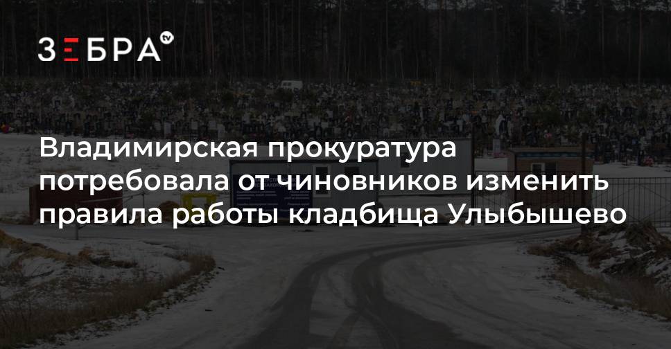 Прокуратура Владимирской области потребовала от мэрии Владимира изменить положение о погребении и похоронном деле, декабрьская редакция которого спровоцировала «кладбищенские войны» на Улыбышево (раз, два). Главе города Дмитрию Наумову и директору муниципального Центра управления городскими дорогами (ЦУГД) Алексею Афанасьеву внесены представления.
