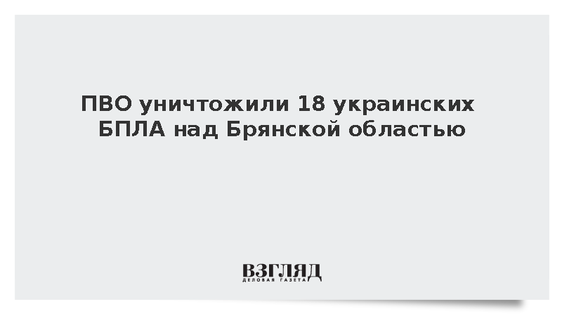 Силы ПВО РФ за сутки уничтожили 18 беспилотников в небе над Брянской областью, сообщил губернатор Богомаз, уточнив, что пострадавших и разрушений нет.