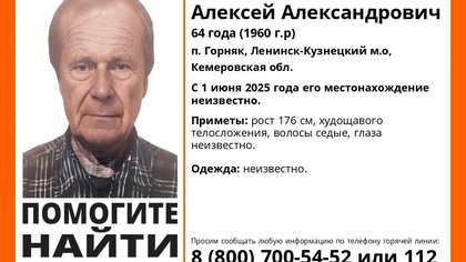 ПСО "ЛизаАлерт" сообщил о пропаже 64-летнего жителя поселка Горняк Ленинск-Кузнецкого округа. Местонахождение Нагина Алексея Александровича остается неизвестным с воскресенья, 1 июня.