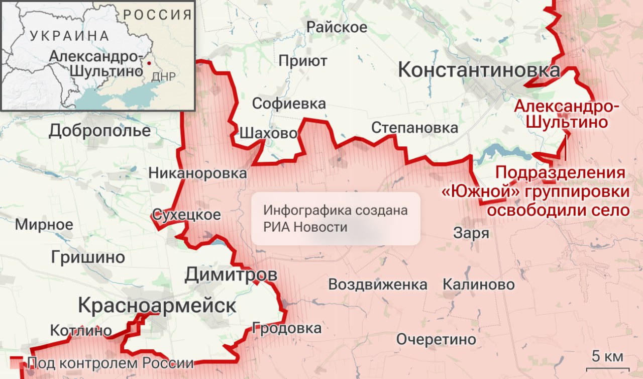 ▪️Российские войска взяли под контроль Александро-Шультино в ДНР, сообщили в Минобороны.