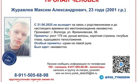 Журавлёв Максим Александрович не выходил на связь с родственниками с 21 июня 2025 года.