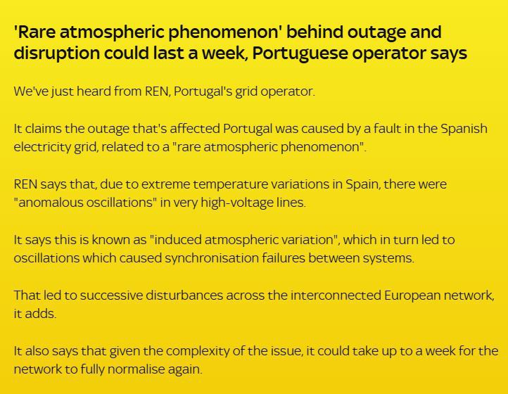 ✔️Подводим итоги: Взрыв в Бендер-Аббасе — результат халатности, а отключение половины Европы от электричества — «редкого атмосферного явления» (так заявил португальский оператор электросетей) — известного как «индуцированная атмосферная вибрация».