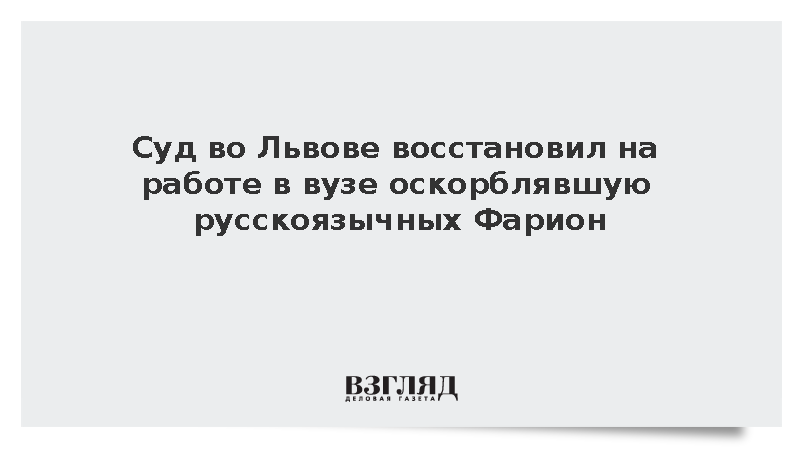 Львовский апелляционный суд постановил восстановить экс-депутата Верховной рады Ирину Фарион в должности преподавателя местного университета, откуда она была уволена после оскорбления русскоязычных украинцев, сообщило украинское издание «Общественное».
