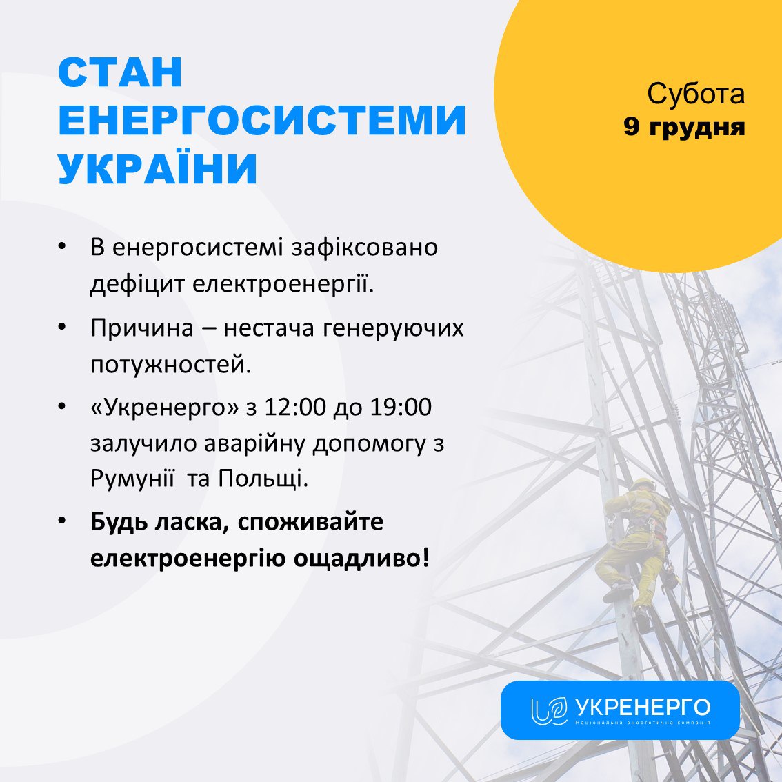 Для компенсации дефицита энергетики приняли аварийную помощь от Румынии и Польши с 12:00 до 19:00.