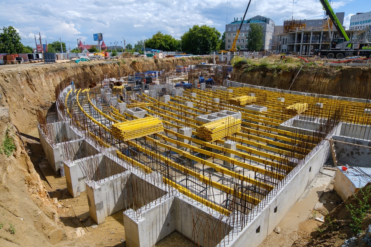Строители уже заложили три захватки подвала и параллельно готовятся к началу земляных работ на пристрое к основному корпусу, который будет иметь три надземных этажа.