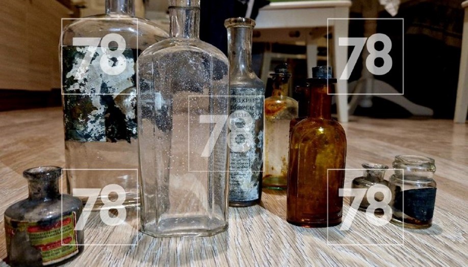 На фото: Стеклянные ёмкости, найденные в дореволюционном доме на Петроградской стороне.