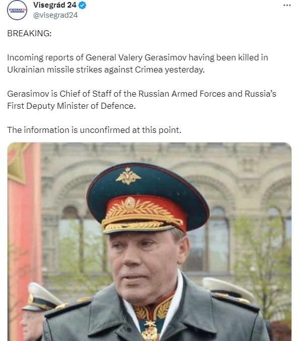 Глава российского Генштаба Валерий Герасимов мог погибнуть вчера во время атаки на Крым,