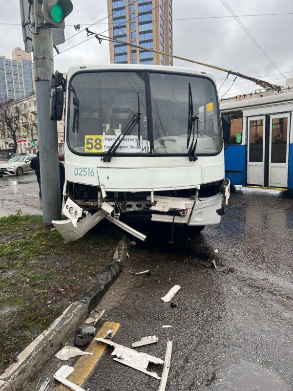 Автобус № 58 (ПАЗ) под управлением 63-летнего воронежца врезался в столб светофора после столкновения с «Тойотой». За рулём легковушки находился 29-летний местный житель.
