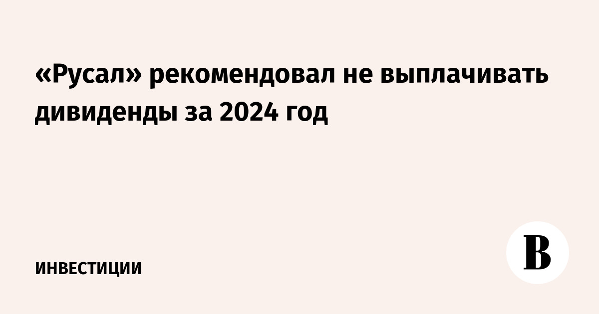 Совет директоров компании «Русал» рекомендовал собранию акционеров не распределять прибыль компании по результатам 2024 г., а также не объявлять и не выплачивать дивиденды по итогам прошлого года. Об этом говорится в заявлении «Русала», опубликованном на сайте Гонконгской фондовой биржи.