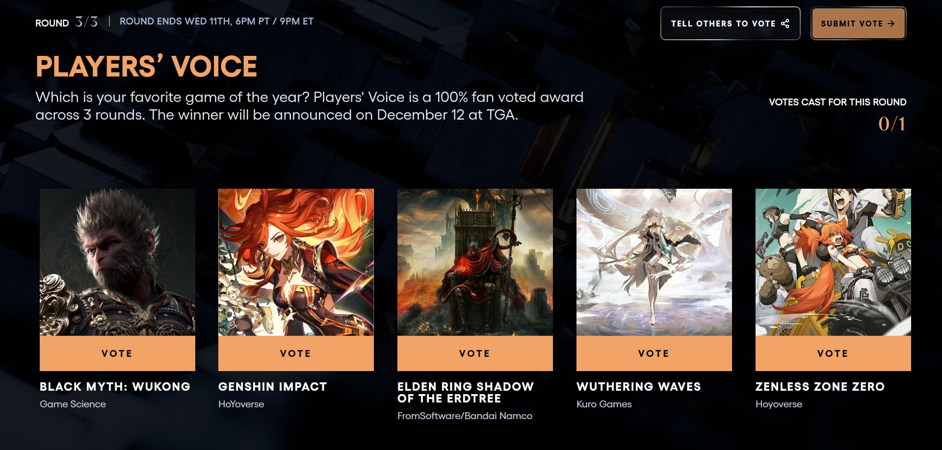 Голосуем тут: thegameawards.com/brackets/players-voice. Итоги ночью 13 декабря.