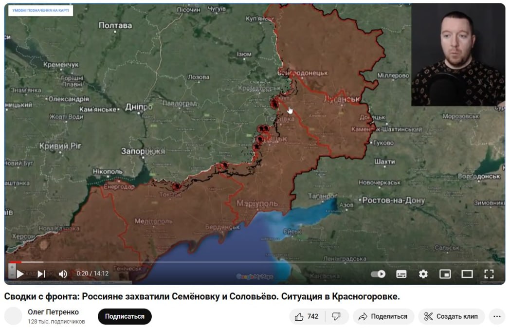 β«οΈ Π£ΠΊΡΠ°ΠΈΠ½ΡΠΊΠΈΠΉ ΠΏΡΠΎΠΏΠ°Π³Π°Π½Π΄ΠΈΡΡ, ΠΎΠ±ΠΎΠ·ΡΠ΅Π²Π°ΡΠ΅Π»Ρ ΠΈ Π²ΠΎΠ»ΠΎΠ½ΡΠ΅Ρ ΠΠ‘Π£ ΠΠ»Π΅Π³ ΠΠ΅ΡΡΠ΅Π½ΠΊΠΎ ΡΠΎΠΎΠ±ΡΠΈΠ» Π½Π° ΡΠ²ΠΎΠ΅ΠΌ ΠΊΠ°Π½Π°Π»Π΅, ΡΡΠΎ ΡΠΎΡΡΠΈΠΉΡΠΊΠ°Ρ Π°ΡΠΌΠΈΡ Π·Π°Ρ Π²Π°ΡΠΈΠ»Π° Π΅ΡΡ Π΄Π²Π° ΡΠ΅Π»Π° Π½Π° Π·Π°ΠΏΠ°Π΄Π΅ ΠΎΡ ΠΠ²Π΄Π΅Π΅Π²ΠΊΠΈ: Π‘ΠΎΠ»ΠΎΠ²ΡΠ΅Π²ΠΎ ΠΈ Π‘Π΅ΠΌΠ΅Π½ΠΎΠ²ΠΊΡ.