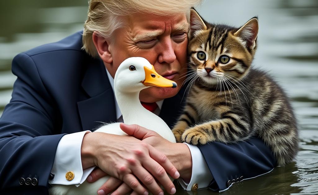 Tout part d'une image. Une vision, aussi fascinante qu'invraisemblable, qui tourne et retourne sur X : Donald Trump émergeant de l'eau (que la pudeur se rassure, habillé !) et tenant, blottis contre sa poitrine, un chaton et un caneton. Un utilisateur perplexe serait dans son droit de s'interroger sur le but avoué d'une telle apparition, mais ce serait oublier qu'en Amérique rien n'est jamais gratuit. Inutile de le nier, la création d'images par le biais des logiciels d'intelligence artificielle (IA) aura un impact -peut-être décisif- sur les résultats de cette présidentielle made in the USA.