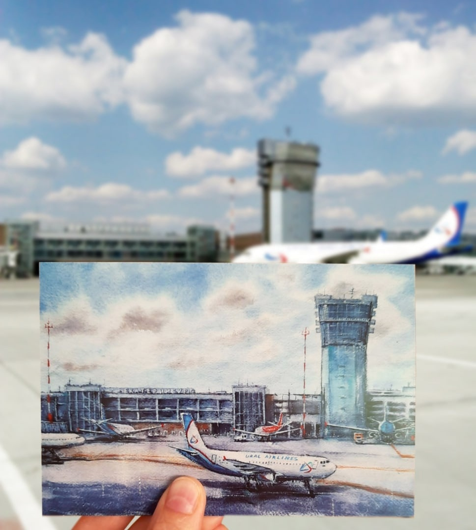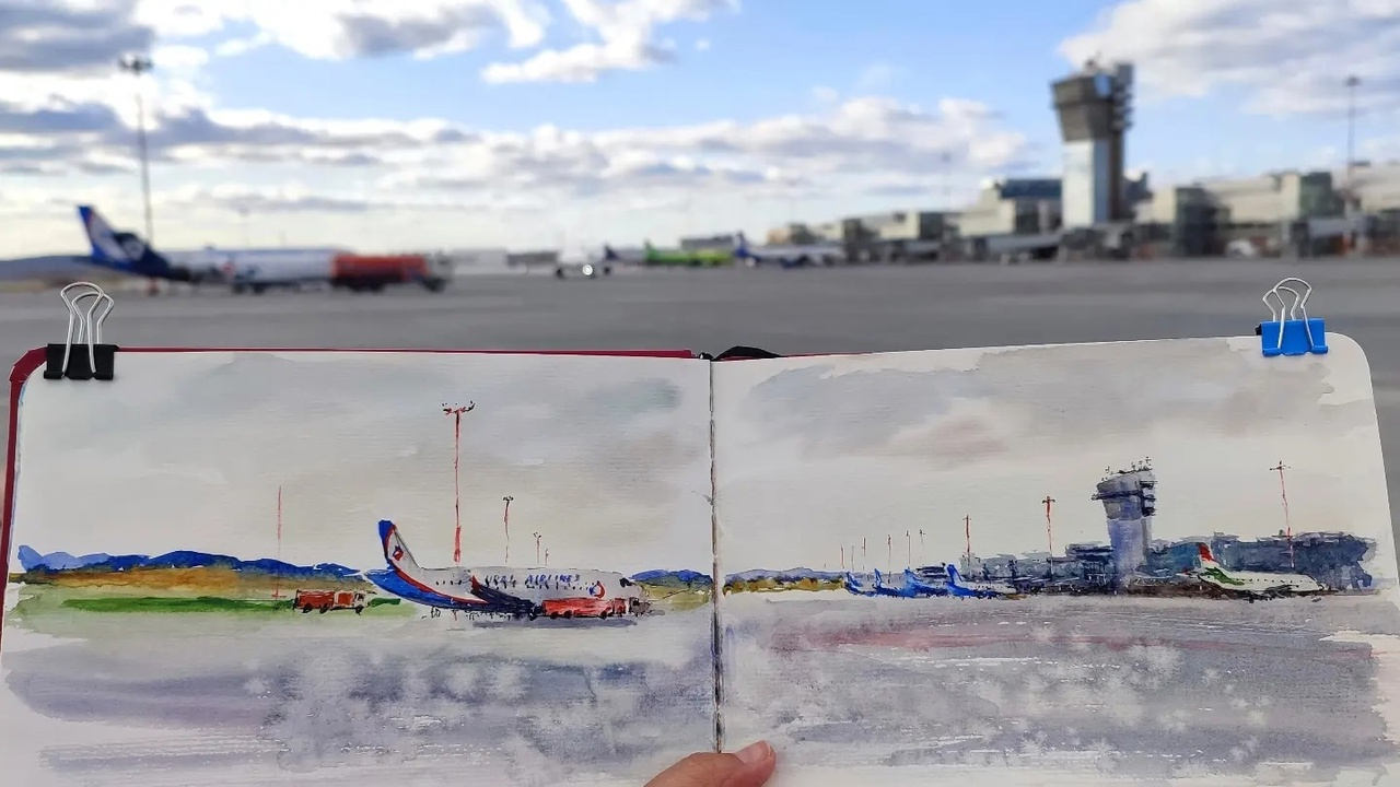 «Пилоты машут рукой». Художница нарисовала самолеты со взлетной полосы в Кольцово. Как ей это удалось?