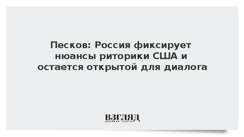 По его словам, Кремль продолжает внимательно следить за риторикой Соединенных Штатов в отношении России и фиксировать все нюансы, передает ТАСС.