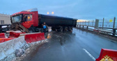 Как сообщает ГУ МВД по Петербургу и Ленобласти, около 03.30 мск 34-летний житель Волгоградской области, управляя большегрузом «Skania P400» с полуприцепом, груженым 15 тоннами щебня, не справился с управлением и совершил наезд на ограждение.