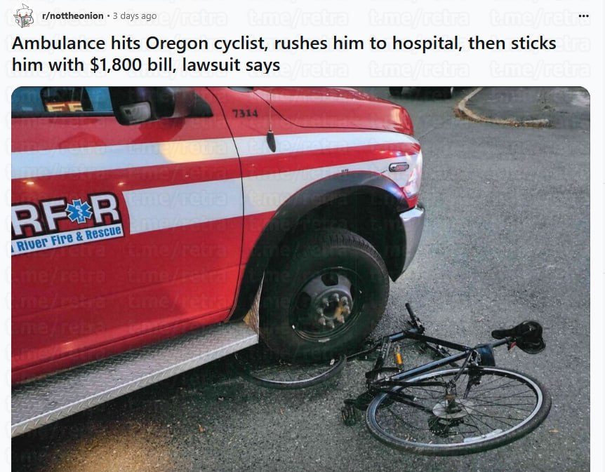 В Орегоне скорая помощь сбила велосипедиста, доставила его в больницу и выставила ему