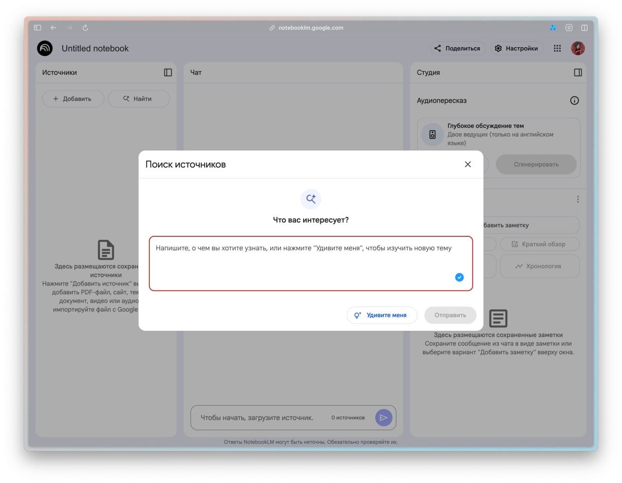 Модель собирает примерно 10 источников, научные публикации, статьи и видео, и сама анализирует их. Можно задавать любые вопросы, генерировать подкасты или собирать все в инфографику.
