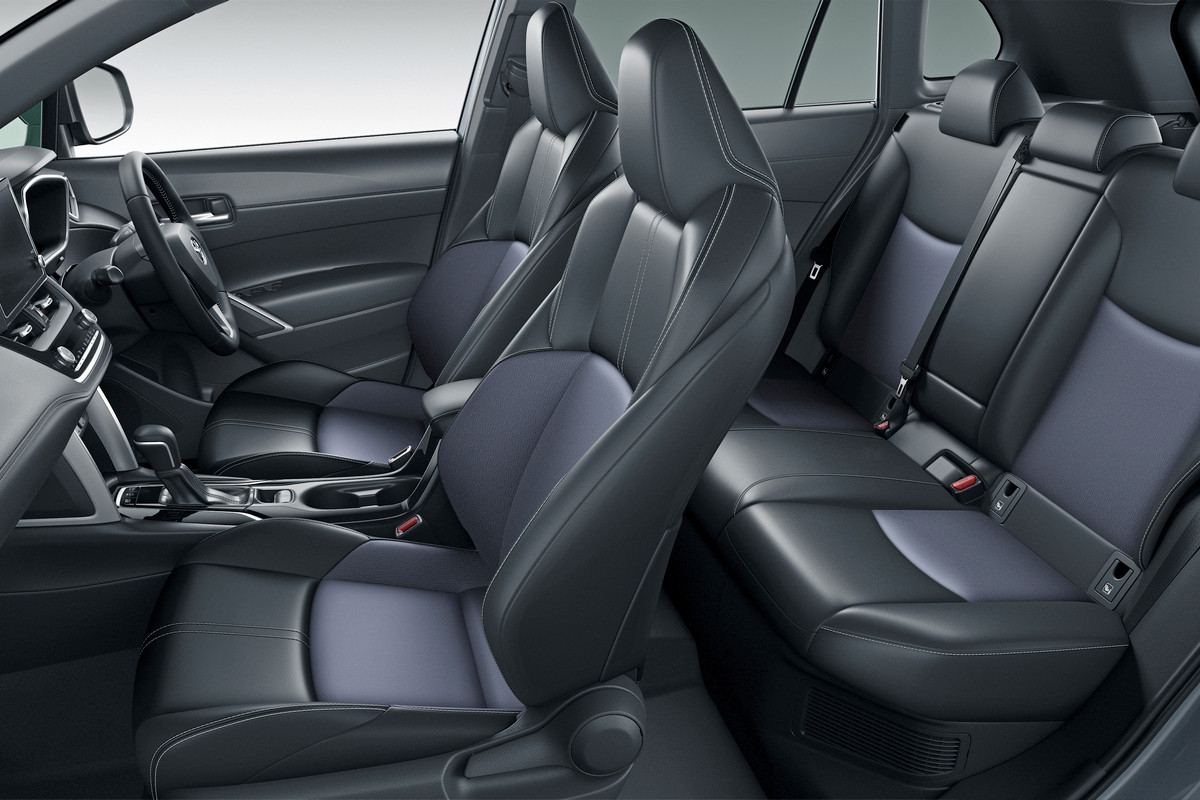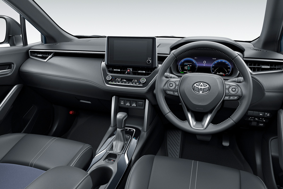 Есть и другие обновки. Список оборудования богатых комплектаций Toyota Corolla Cross пополнили виртуальная приборка диагональю 12,3 дюйма и мультимедийная система с планшетом на 10,5 дюйма (в базе – 8-дюймовый дисплей). Кстати, такие экраны изначально предусмотрены для европейского кросса. В Японии также улучшен комплекс безопасности Toyota Safety Sense: в частности, он дополнен функцией обнаружения встречных транспортных средств и пешеходов на перекрестках. Наконец, расширена палитра цветов кузова (гибрид, в том числе, может быть двухцветным). При этом чисто бензиновый кросс лишился «промежуточной» комплектации S (у гибридной модели она осталась).