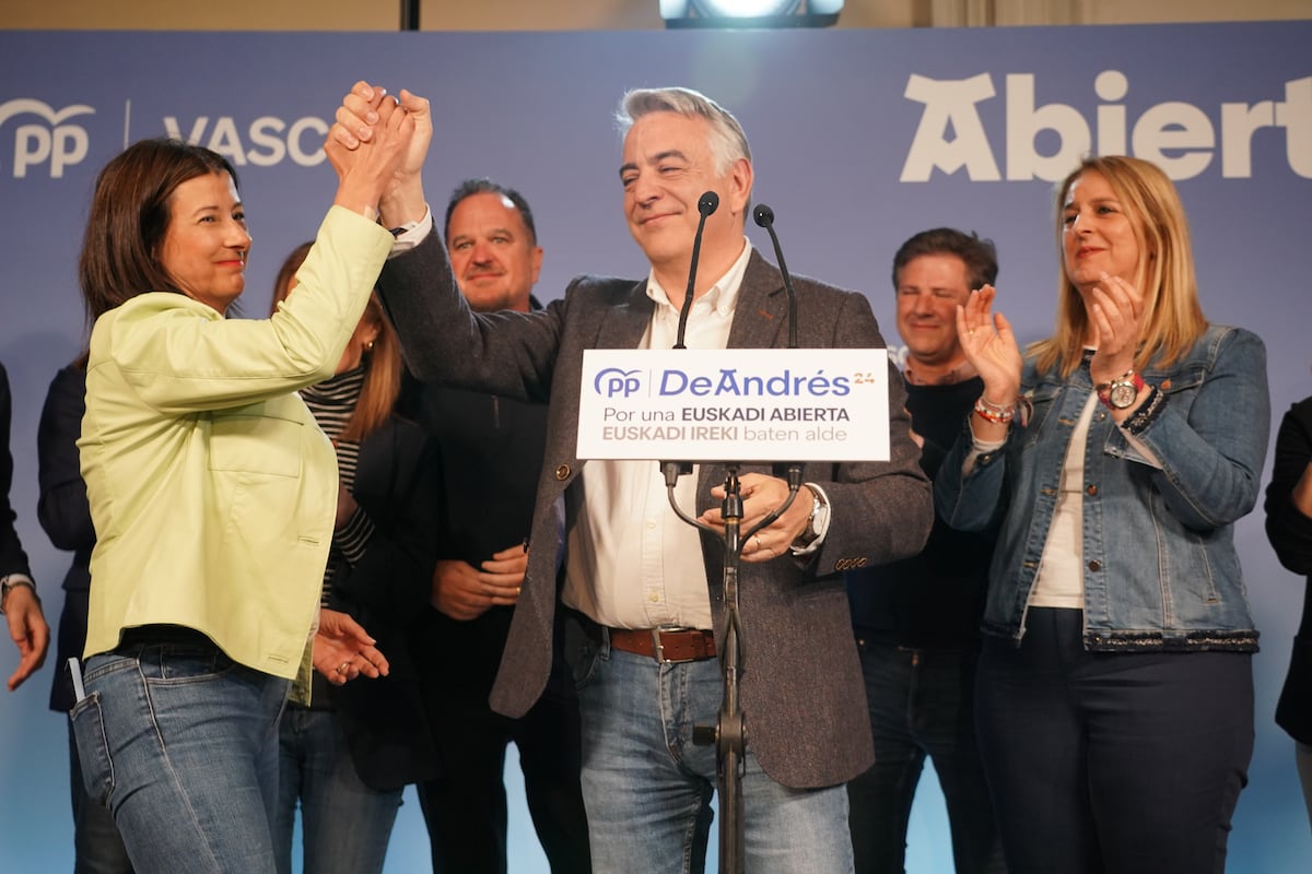 La campaña moderada, para algunos excesivamente plana, de Javier de Andrés (PP), ha permitido a los populares salvar los muebles, pero sin anotarse ningún otro objetivo político y sin salir de la irrelevancia en Euskadi. El PP ha crecido un escaño, hasta los siete diputados en el Parlamento vasco (con 96.630 votos), todos, eso sí, pata negra popular, ya que dos de los seis con los que contaban hasta ahora pertenecían a Ciudadanos, un partido al que han conseguido absorber electoralmente. El ligero crecimiento y la fagocitación de Cs son, sin embargo, los únicos éxitos que puede apuntarse el PP, que fracasa en el resto de sus objetivos. No logra ser decisivo, porque el PNV y el PSE podrán reeditar cómodamente su pacto con mayoría absoluta; ni desgastar a los socialistas, ni tampoco consigue taponar a Vox, que mantiene su diputado por Álava.