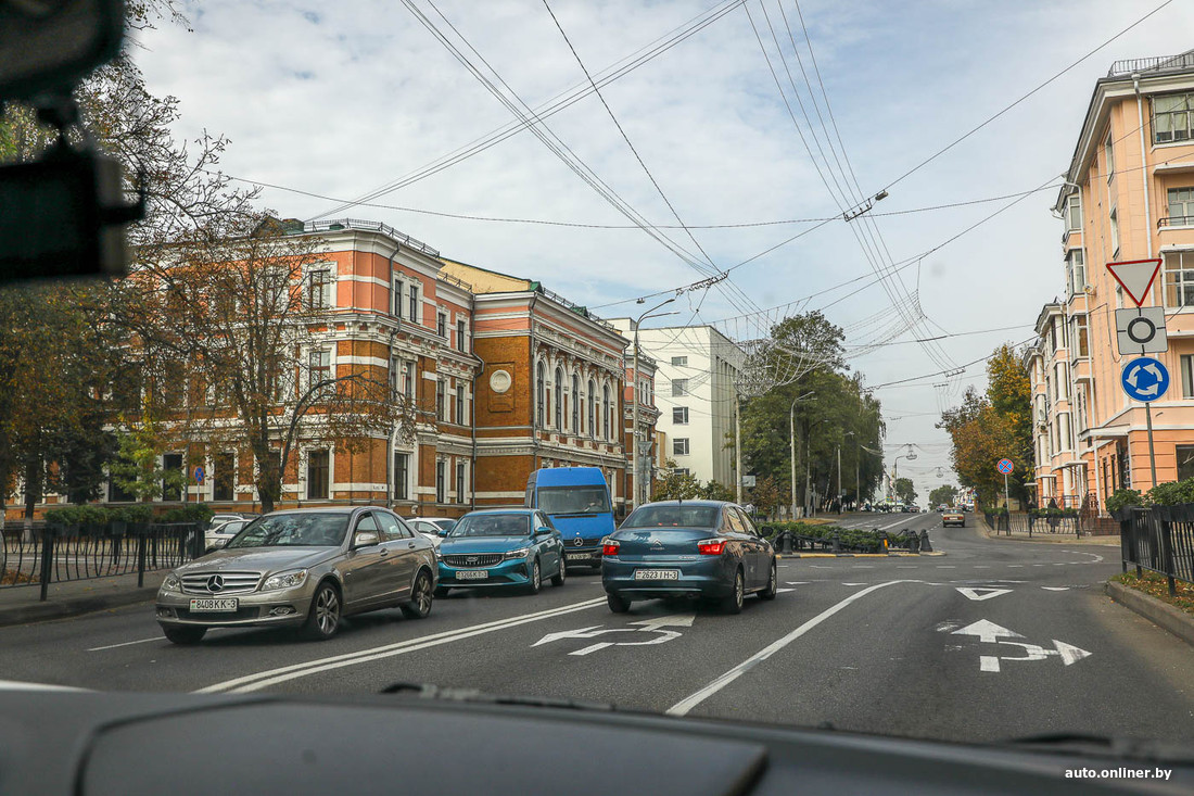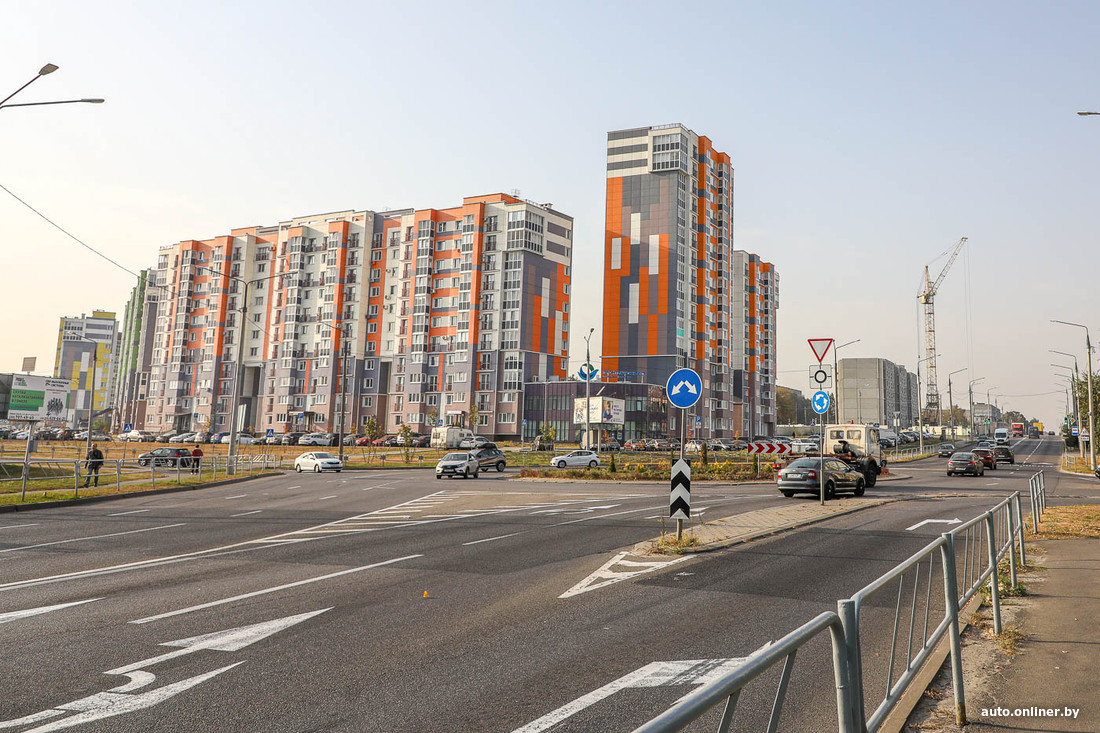 — Хотелось бы видеть знаки приоритета, чтобы сориентироваться, — ворчит наш водитель. — Хотя конфликтов особо не возникает, по крайней мере сейчас, когда висит разметка. А выпадет снег — тогда как? Станут, видимо, уступать по помехе справа. У нас в Минске непременно повесили бы знак, а здесь это как-то не является обязательным. Дальше знаки приоритета есть: круг — главная дорога, все стандартно. Но организация дорожного движения такая, что ты больше должен на асфальте высматривать, что да как.